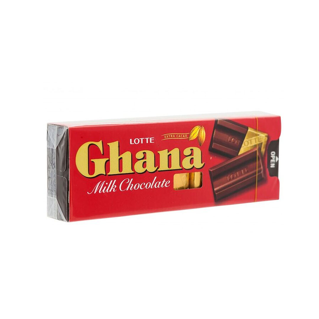 Шоколад Ghana — знаковый продукт в истории компании LOTTE. Он выпускается уже более 50 лет, с 1964 года, когда компания адаптировала швейцарские стандарты качества для японского рынка. Ghana отличается очень мягким вкусом и тающей текстурой, а назван он, соответственно, в честь государства Гана - крупнейшего производителя какао-бобов, из которых и делается этот шоколад.