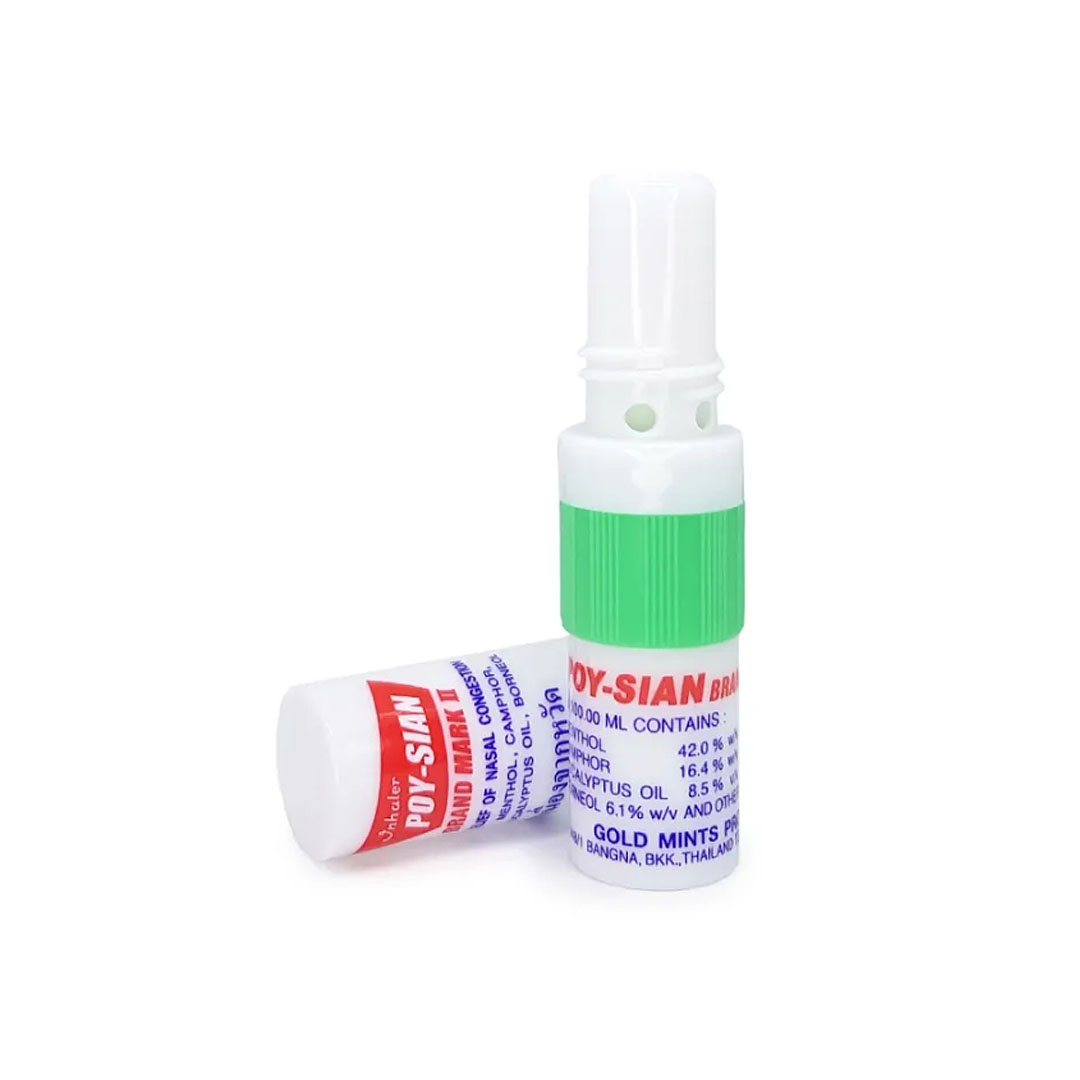 Тайский назальный ингалятор-карандаш 2-в-1 Poy-Sian на основе эфирных масел предназначен для облегчения дыхания при заложенном носе или простуде, головных болях и укачивании, тонизирует и освежает. Ингалятор-карандаш имеет компактный и удобный формат, легко помещается в кармане или сумке, что позволяет использовать его в любое время и в любом месте. Является великолепным натуральным средством для профилактики простудных заболеваний (особенно осенью и зимой), помогает при синуситах и насморках.