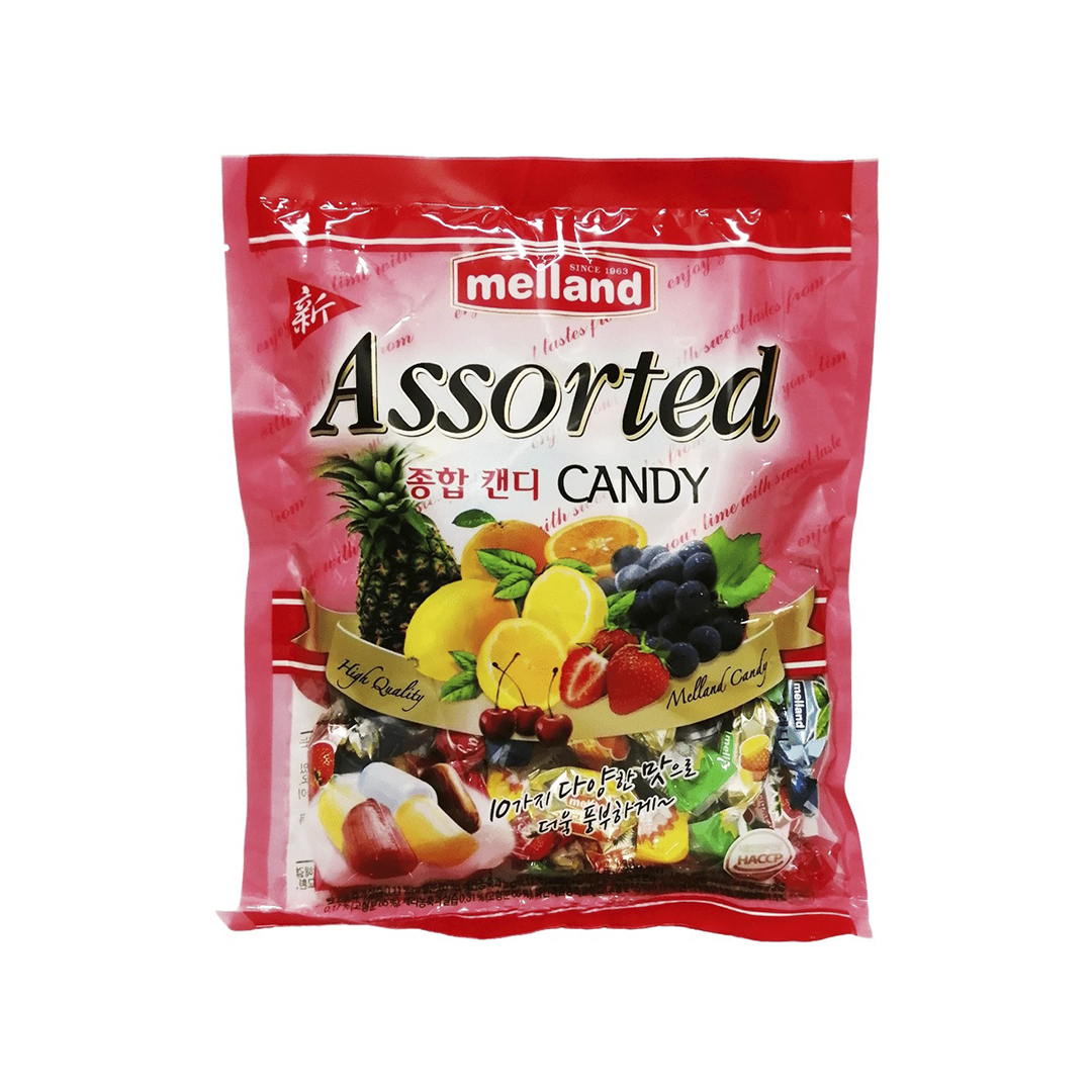 Сладкие фруктовые конфеты. Каждая упакована в отдельный фантик, что позволяет им долго оставаться свежими и вкусными. Леденцовая карамель «Фруктовое ассорти» Assorted Candy Melland подарит заряд позитива людям всех возрастов и позволит восполнить нехватку глюкозы.
